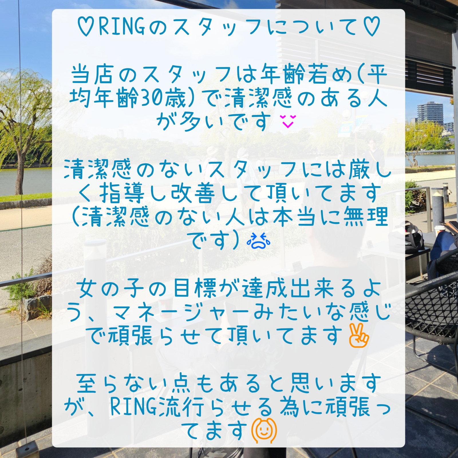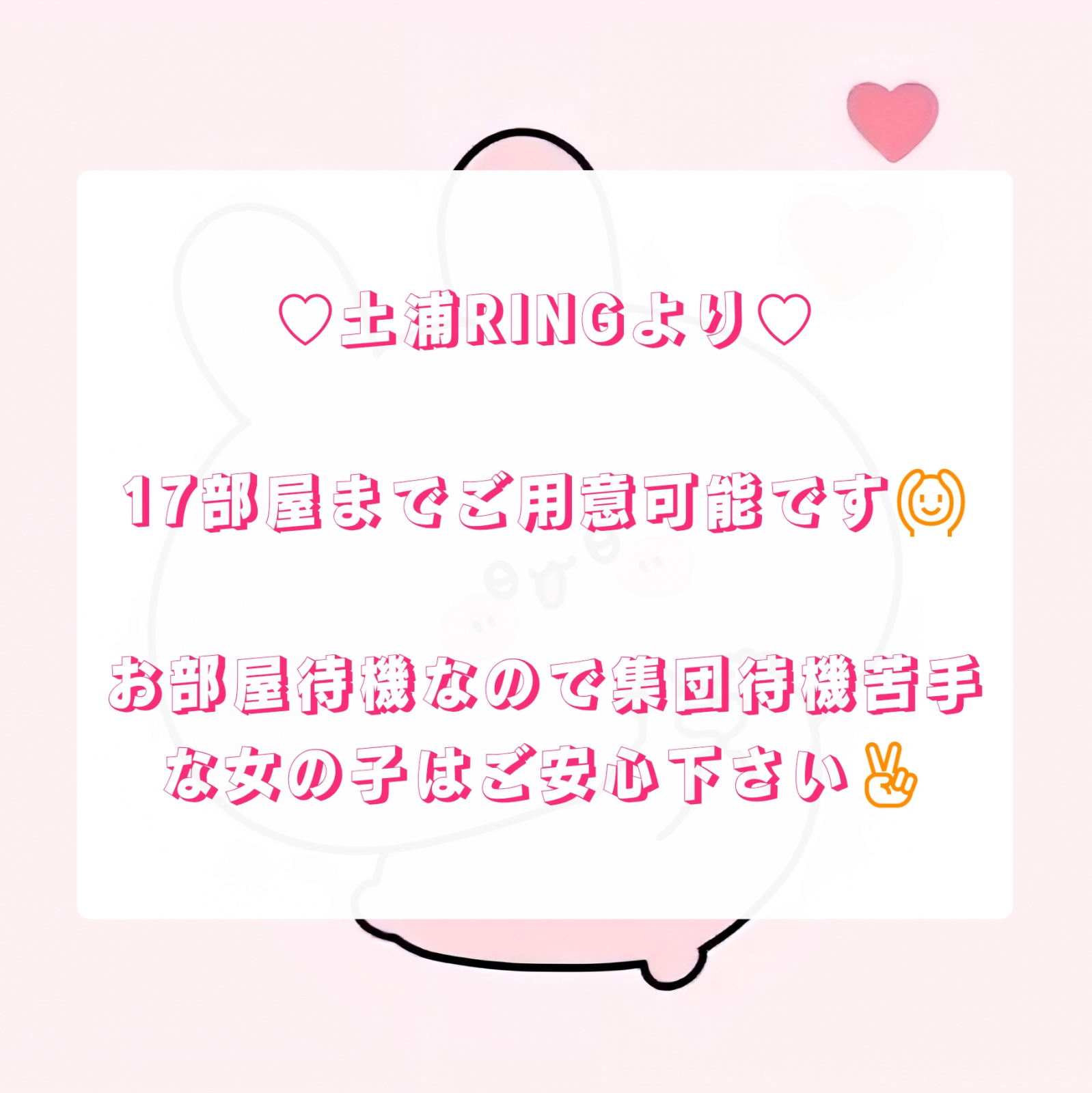 | 当店について | \土浦のアイドルソープ/ 容姿.性格を基準に厳選されたキャストで一生懸命なおもてなしをお届けする...それが【RING】一緒に居て良い時間を過ごせるような女の子で大切なお客様をエスコート致します。 RINGをご愛顧頂き誠にありがとうございます。 本日も当店自慢の豪華女の子でお客様をお出迎えさせて頂きます。 皆様のお早目の予約を従業員一同心よりお待ちしております。 何か聞きたい事などありましたら遠慮なくお問い合わせ下さい。 |